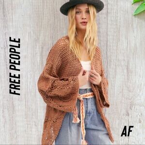 FREE PEOPLE BY FLOOK CROCHET KIMONO BROWN NEW NWT SMALL