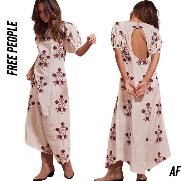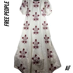 FREE PEOPLE CACTUS FLOWER MAXI DRESS NEW LARGE WHITE WINE COMBO