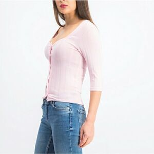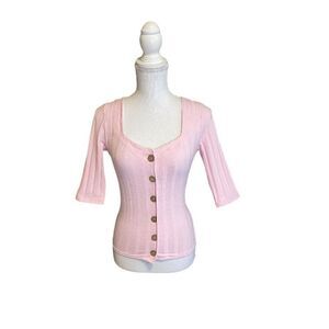 A thick ribbed knit construction with button front closure is a must for your springtime closet. - Square neck - Elbow length sleeves - Front button closure - Ribbed knit construction - Approx. 23" length (size S) - Imported Fiber Content97% Polyester, 3% Spandex