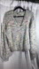Forever cool and classic, this fuzzy sweater is featured in a timeless V-neck silhouette with multicolored knit detailing and exaggerated sleeves for added shape.