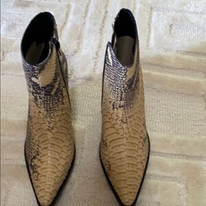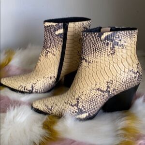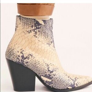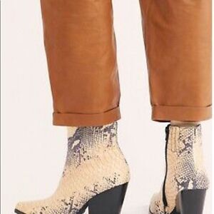 Step into these so cool snake boots featured in a textured leather design with a pointed toe and stacked block heel.