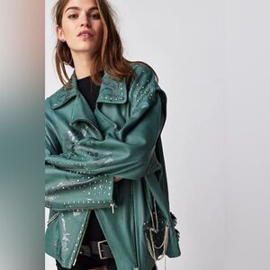 FREE PEOPLE Nigel Preston Chain Embellished Biker Jacket