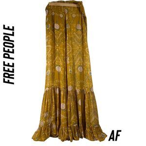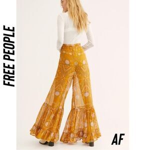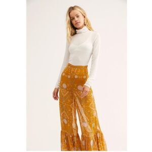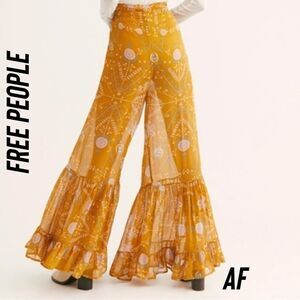 Free People Penny Lane Pant- These high-waisted printed pants feature short lining into sheer exposed ruffle-tiered legs. Short lining detail Hidden side zip closure . Shear pants.Gathered ruffle-hem bottom