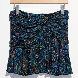 So pretty and printed, this high-rise mini skirt is featured in a pleated silhouette with drawstring ruching detail at top for added dimension.