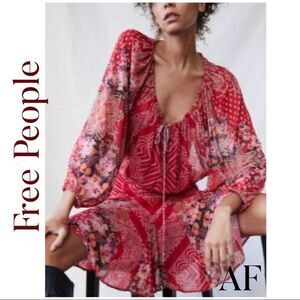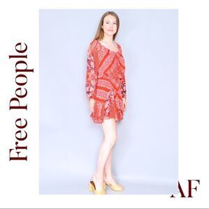 FREE PEOPLE SEVEN WONDERS MINI DRESS IN RED NWT LARGE