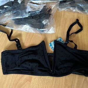 Sexy, comfy, and cute is how we'd describe the Free People Sierra Black Swiss Dot Mesh V-Neck Bandeau! This convertible bralette can be worn with or without straps, either way, its hidden V-bar will provide a dose of sexy support. Stretchy mesh construction is decorated with fuzzy Swiss dots. Hidden no-slip strips and adjustable spaghetti straps.