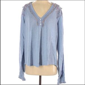 FREE PEOPLE SIESTA EMBROIDERED BOHO BLUE TOP XS