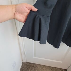 Beautiful Free People 'Sweet Talk' mini dress. Unlined. Ponte knit fabric. Exposed shoulders. Ruffle detail. Back keyhole with button closure. Size medium