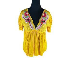 FREE PEOPLE Womens Top Fiesta Nueva Relaxed Marigold Yellow Size XS boho hippie