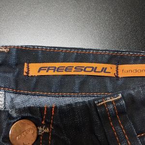 FREESOUL Funamentals Sake Jeans Straight Leg Low Rise W26 L33 Dark Blue Denim