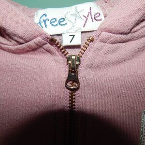 FREESTYLE girls size 7 pink girl power sequin stripe full zip thin sporty jacket