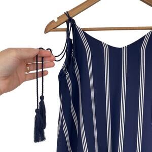 FREEWAY Tassel Tie Strap V Neck Tank Top Nautical Blue White Size Small Coastal