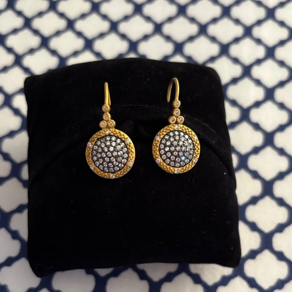 Freida Rothman Gunmetal/Gold drop earrings. Like new! 1 inch drop.