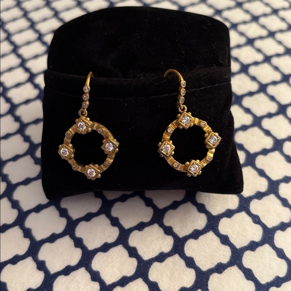 Freida Rothman Gold Four Point Circle Earrings with crystal accents. Like new! 1.5 inch drop.