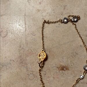 Gold Signature Bezel Link Necklace. 36 inches long. Like new! Gunmetal and gold with crystal accents. Comes with jewelry case.