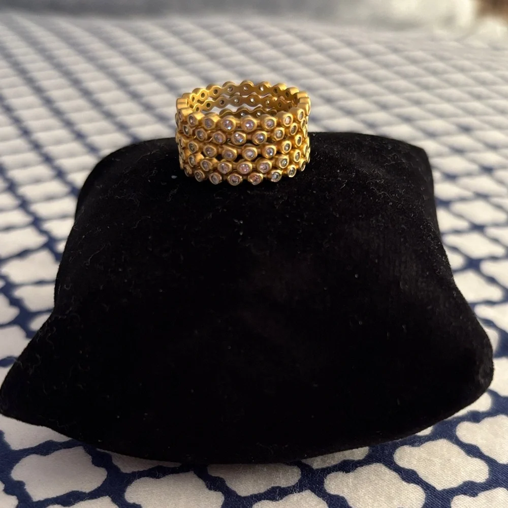 Freida Rothman Signature Stackable Pave ring with 5 individual bands. Gold with crystal accents. Like new! Size 6