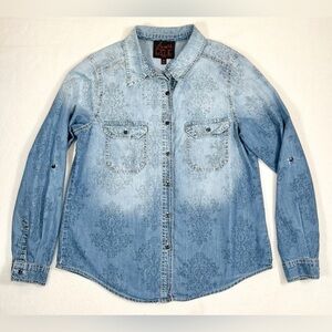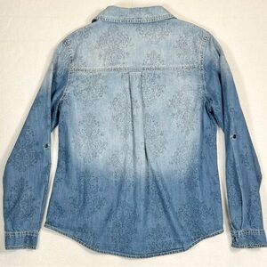 FRENCH BLUE Chambray Filigree Dip Dye Denim Button Down Size Petite Small