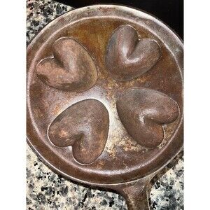 FRENCH CAST IRON BRONZE HEART SHAPED MUFFIN PAN "COUER DE FER" SKILLET PATINA