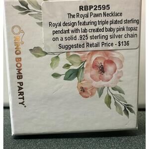 Royal design featuring a .925 22” sterling silver chain with a chess piece style pendant that features triple plated sterling silver and lab created delicate baby pink topaz on top! This is a gorgeous necklace!!!