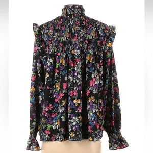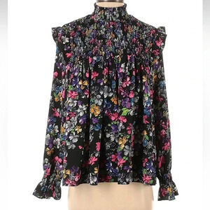 FRENCH CONNECTION Alianna Black Ruffled Floral Blouse Long Sleeve Size Small S