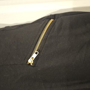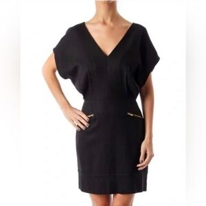 FRENCH CONNECTION Black V Neck Mini Gold Zipper Dress Sz 8 Career Minimalist
