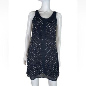 FRENCH CONNECTION Dress Navy Blue Studded Rockstud V Neck Sleeveless Shift boho