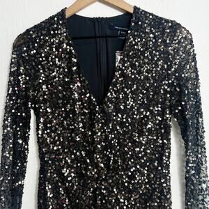 FRENCH CONNECTION EMILLE SPARKLE PEWTER SHORT DRESS V-NECK WOMEN LONG SLEEVE 4