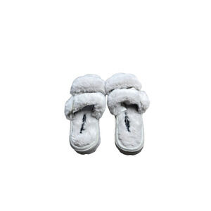 FRENCH CONNECTION GRAY FUR SLIDER SIZE 5/6 NWOT.French connection fairy indoor outdoor Sole cushion comfort slipper color GRAY size SMALL (5-6).