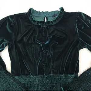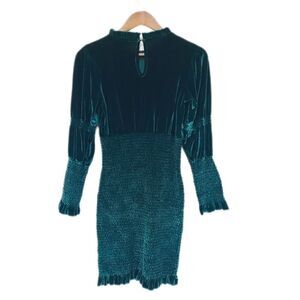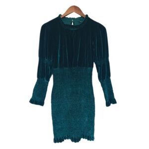 FRENCH CONNECTION Green Velvet Smocked Mini Dress Long Sleeve Size XS Medium New