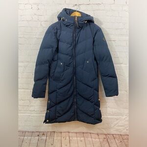 FRENCH CONNECTION Hooded Long Puffer Jacket Utility Navy Blue XSmall