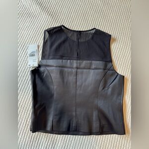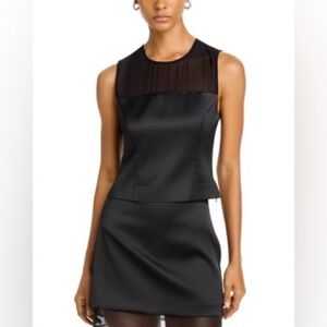 FRENCH CONNECTION Illusion Mesh Satin Multi Media Classy Black Top Size 2 NWT