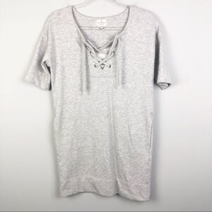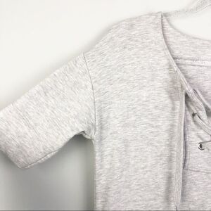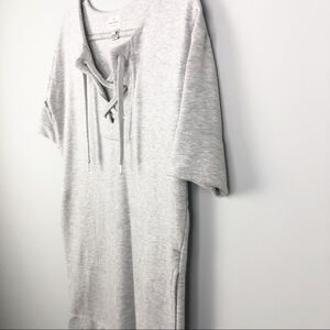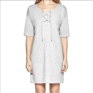 Adorable gray sweatshirt dress by French Connection!! Side slit pockets. Lace up neckline. So soft and comfy! Perfect as a casual look, dressed up, or worn as a swimsuit coverup!! Excellent condition! Size 0 but likely would fit ab X-Small (XS) or Small.