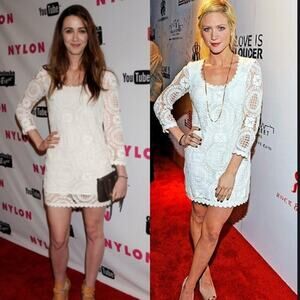 Keywords: understated elegance, lace dress, scalloped hem, crochet detailing, feminine silhouette, evening chic, transitional style, romantic fashion, effortless sophistication, quiet luxury, versatile