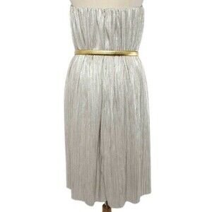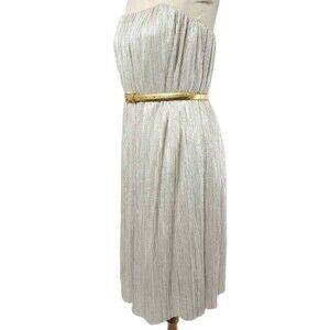 FRENCH CONNECTION Lola Metallic Silver Pleated Strapless Belted Dress Size 10