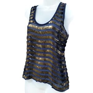 French Connection Size 2 Navy Sheer Bronze Sequin Cocktail Party Prom Tank Top