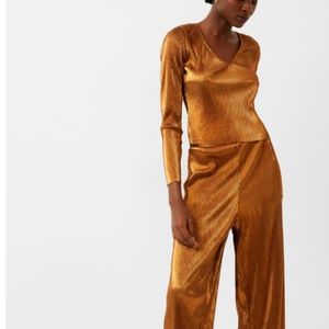 FRENCH CONNECTION TAINA METALLIC PLEATED JERSEY CULOTTES
