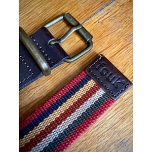 FRENCH CONNECTION UK Multicolored Stripe Belt w/Leather Trim Womens size 32 (fits like US sz XSmall). A great belt for casual wear with your favorite pair of jeans.