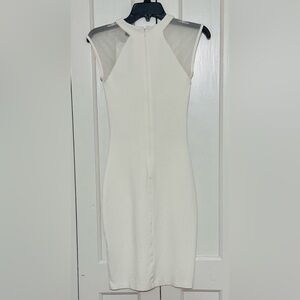 • Round neck, cap sleeves, mesh panels, concealed back zip