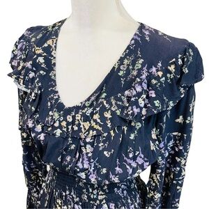 FRENCH CONNECTION Womens Birgin Colette Eco Crepe Ruffle Tiered Dress Navy NWT