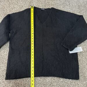 FRENCH CONNECTION Women's Fluffy Knit V Neck Oversized Sweater Size M In Black