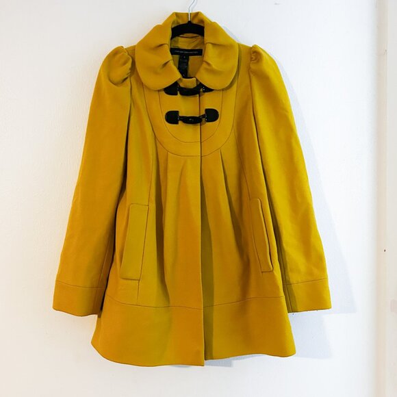 FRENCH CONNECTION Y2K Twee Puff Sleeve Mod Cashmere Wool Blend Yellow Pea Coat