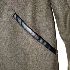 Tulip hem asymmetrical wool blend coat in military green (almost brown) leather trim at pockets. NWOT (tag was ripped off from pulling out of my closet)