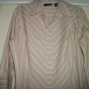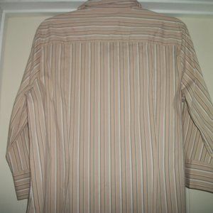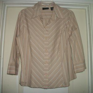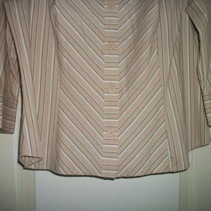 THIS IS SUCH A CUTE SHIRT BLOUSE. IT WAS MADE IN INDONESIA. IT IS 65 % COTTON AND 31 % NYLON PLUS 4 % SPANDEX. FROM UNDERARM TO UNDERARM ALL THE WAY AROUND IS 42 INCHES. WITH SOME WEAR YET PLENTY TO SHARE WITH YOU LUCKY BUYER. ENJOY THE FALL LOOKS. 2ND GROUP. THANKS