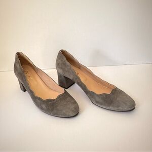 FRENCH SOLE Wave Suede Anthracite Gray Block Heel Pumps 2.5” with Box Size 10.5