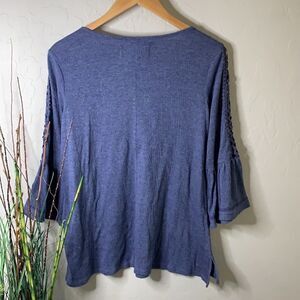 FRENCH laundry size sm. bell sleeves crisscross detailing soft denim blue color
