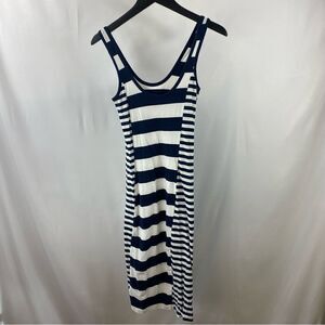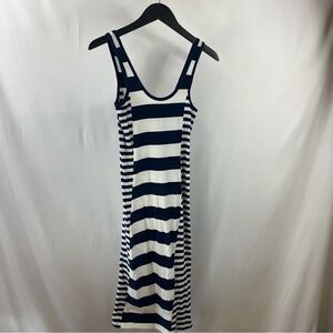 FRENCH CONNECTION Women NAVY BLUE & WHITE FUN STRIPED LONG MAXI DRESs Size 4 EUC