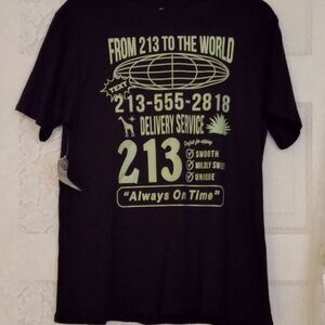 Short sleeves, round neckline, yellow graphics on both sides, 100% cotton, measures 19 inches armpit to armpit, 26 inches long. NWT