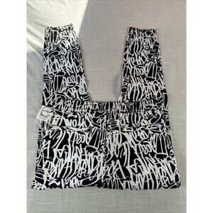 FRESH PRINTS OF BEL-AIR Black White Graffiti Writing Print Stretch Twill Jogger adult Size Medium NWT NEW WITH TAGS 28 inseam. Waist measures at 30 but is stretchy. Two pockets in front and two in back.