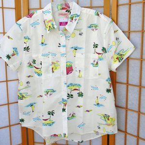 FRESH PRODUCE Beachy Keen Oxford Camp Shirt cotton/spandex NWT