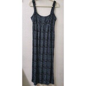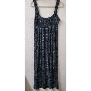 FRESH PRODUCE Dress Womens L Maxi Navy Blue Smocked Jersey Knit Sundress Resort